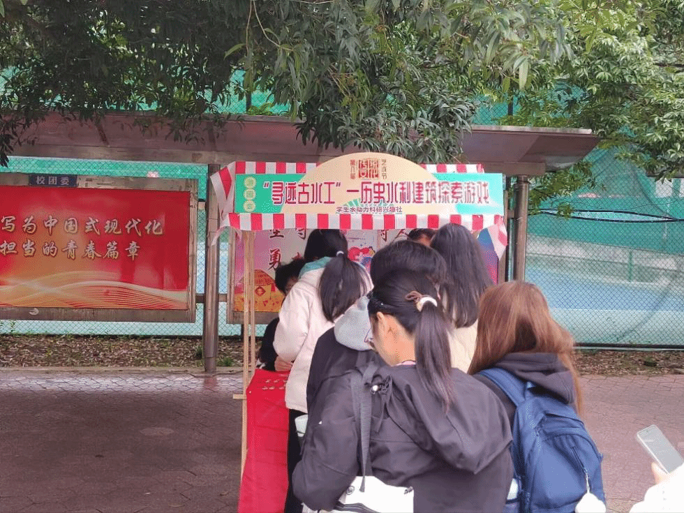 2025年11月21日,全校六类社团积极结合自身特色围绕传统文化主题策划小游戏,在线下设定开展传统文化体验日游园活动。在“水动力”科研兴趣社团的点位上,这场名为“寻迹古水工”的创意文化游戏被参与者们团团围住,以别出心裁的明信片答题形式,带领大家探寻古代水利工程的辉煌历史与卓越智慧。