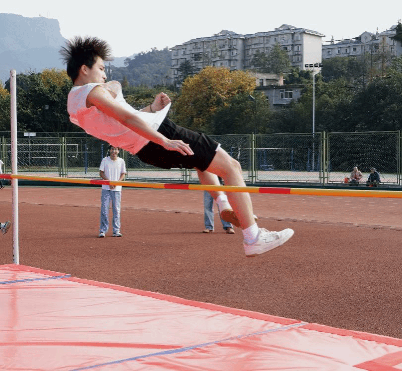 跳高运动员运用惯性原理,掌握合适的力度,让每一道弧线都有意义,汗水顺着脸颊在挥洒,在烈日高照的操场上,随处可见运动健儿们的飒爽英姿。