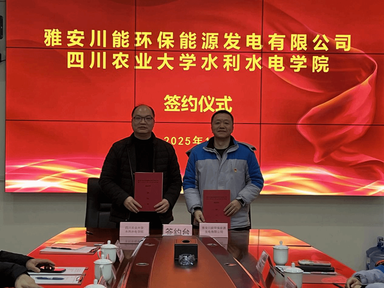 在与会人员的共同见证下,学院副院长胡建与雅安川能环保能源发电有限公司总经理、党支部委员唐继超作为双方代表,共同签署院企合作协议。