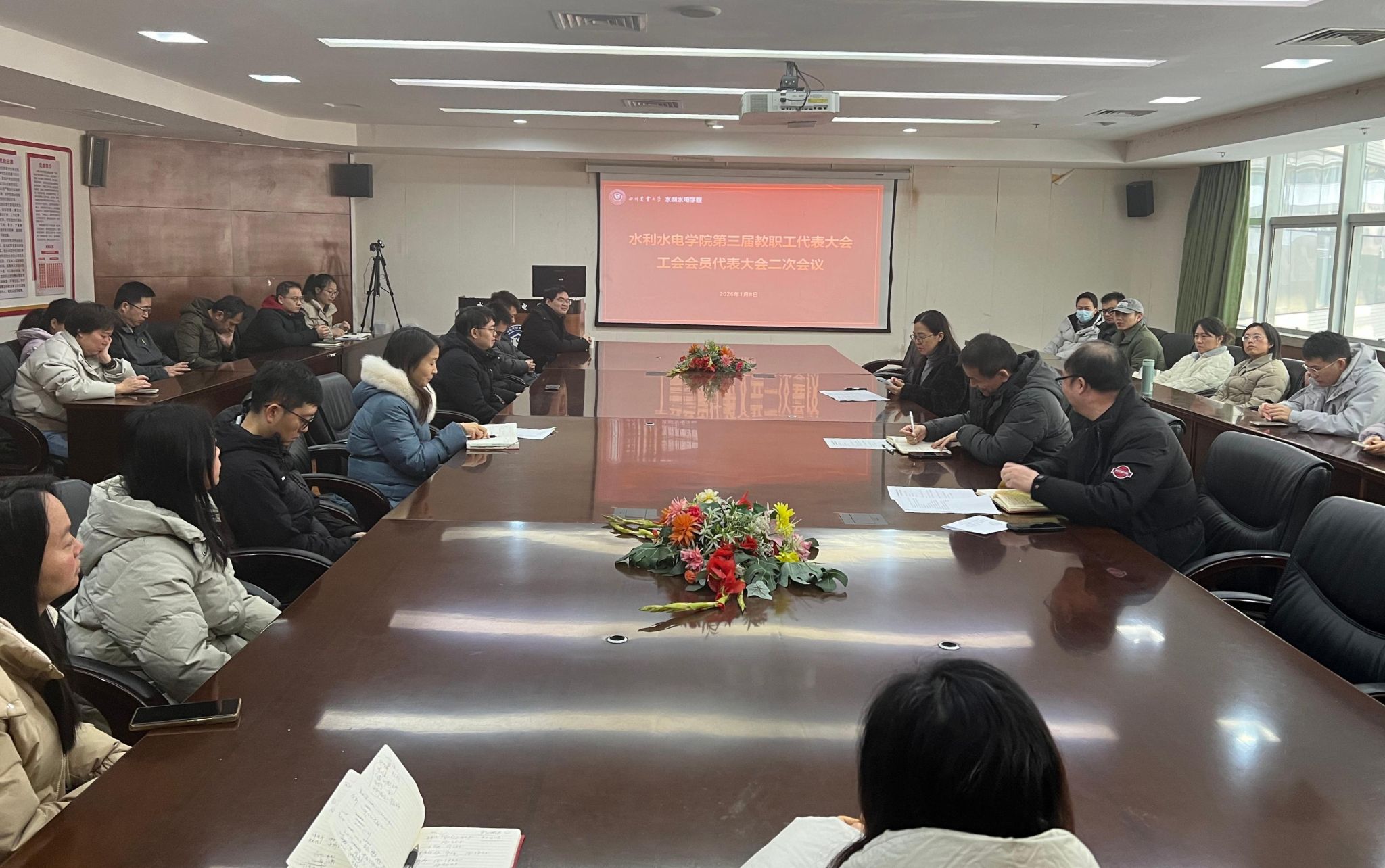 1月8日上午,学院第三届教职工代表大会工会会员代表大会二次会议于综合楼314会议室召开,学院全体教职工出席会议。此次大会由学院教代会主席杨萍主持。