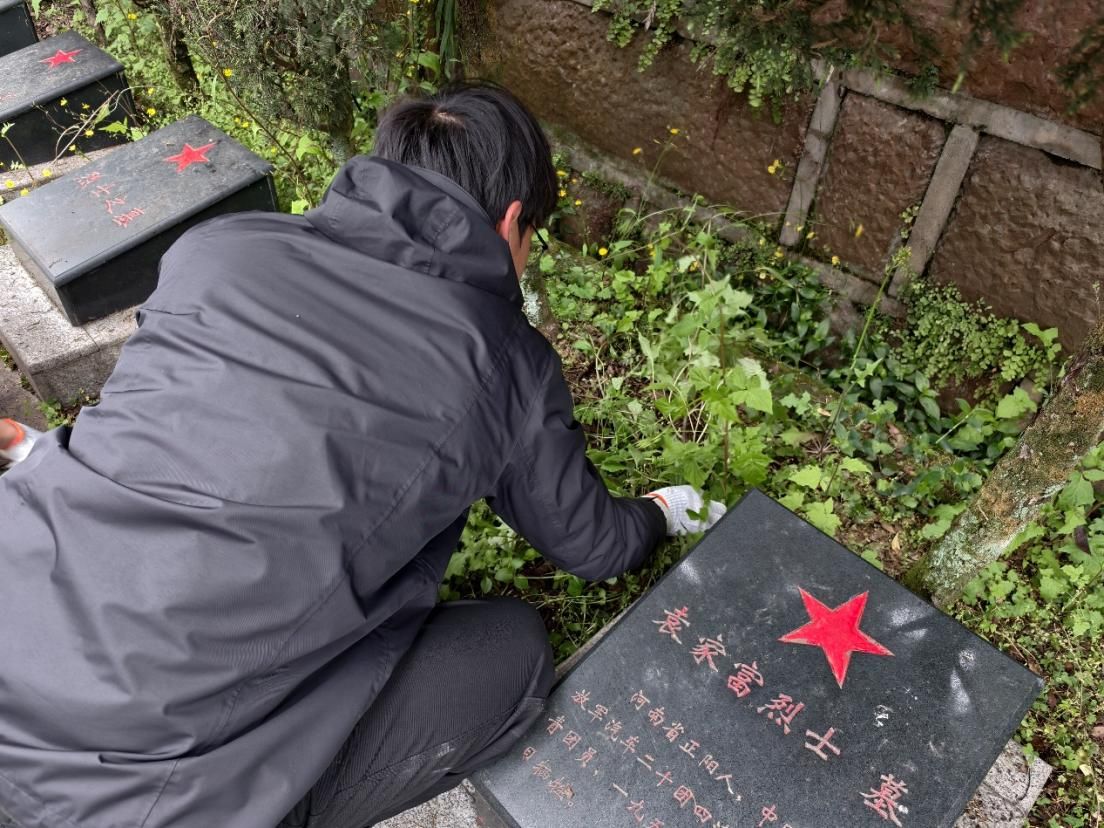 活动现场,同学们手持扫帚、抹布、镰刀等工具,分组对陵园墓区、主要通道进行清扫,清理纪念碑基座周边及烈士墓冢缝隙中的杂草,擦拭墓碑浮尘,归集园内枯枝落叶。上午十时,祭扫仪式正式启动。全体同学在革命烈士纪念碑前列队肃立,为民族独立、人民解放和国家富强英勇献身的烈士默哀一分钟,追思先烈功绩与精神。默哀结束后,同学们缓步绕行纪念碑一周,随后前往烈士墓区,将菊花敬献于墓碑前并鞠躬致意。祭扫仪式结束后,同学们在陵园的革命斗争史展板与浮雕墙前,认真学习辛亥革命至社会主义建设时期,雅安儿女投身革命和建设事业的英勇事迹。据悉,雅安市雨城区烈士陵园安葬着数百位不同历史时期的革命烈士,是当地重要的爱国主义教育基地。