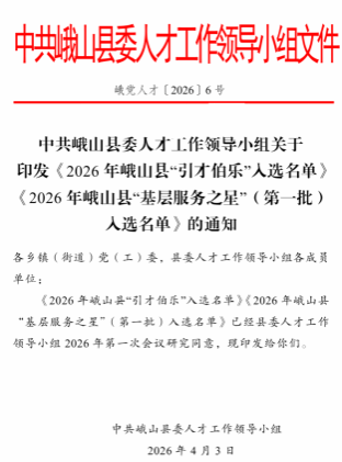 近日,中共峨山县委人才工作领导小组公布2026年"基层服务之星"(第一批)入选名单,我院农业水土工程硕士研究生万翰煜成功入选峨山县"基层服务之星"。