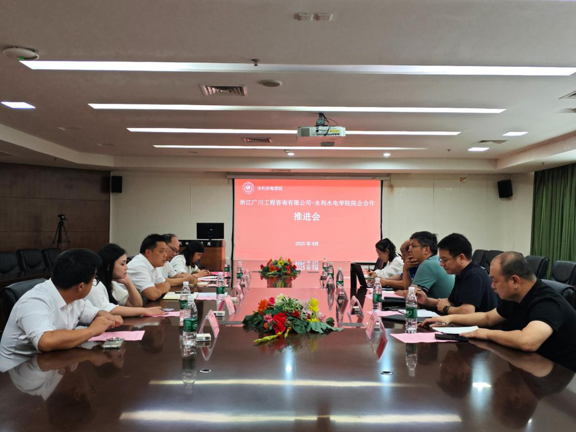 9月29日下午,浙江广川工程咨询有限公司党总支书记、总经理仇健率公司首席专家范士贵、市场发展部主任庞华、综合办公室副主任王凤、浙江广川工程项目管理有限公司副总经理钱玉峰等一行五人来访,与学院在综合楼314会议室举行院企合作推进会,并签署党建共建合作协议。学院院长曹迎、副院长胡建、农业水利工程系主任王莹、党委办公室主任李建华、水利水电工程系副主任李基栋等12人参加会议。会议由胡建主持。