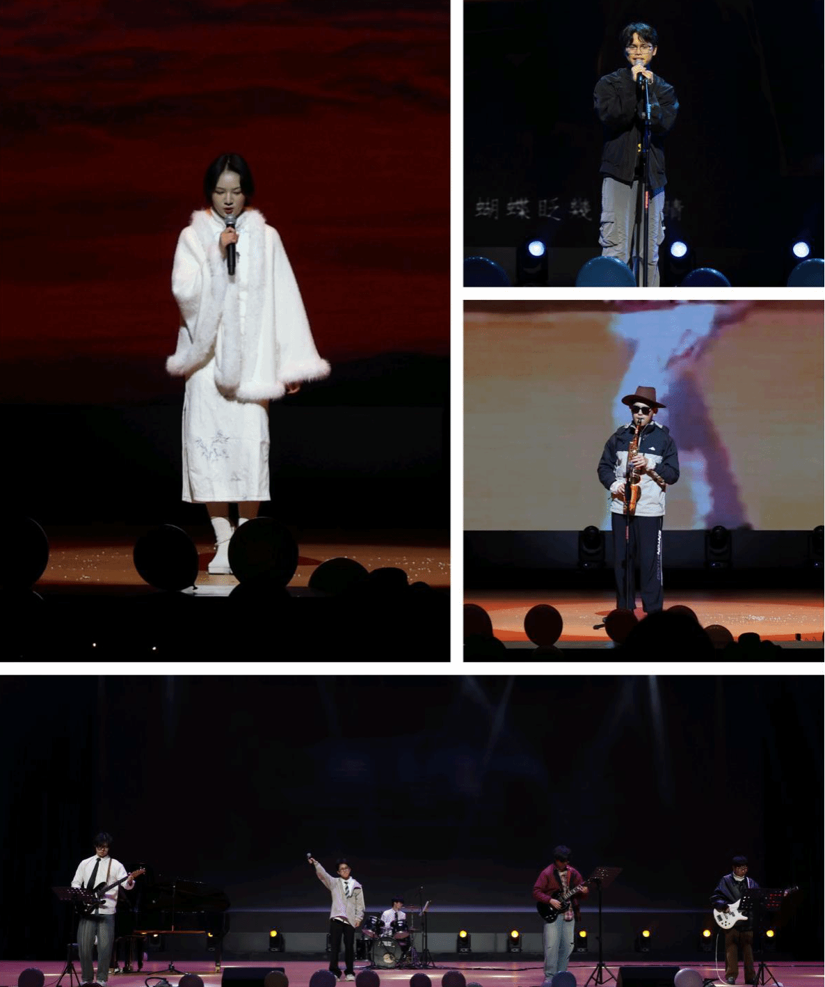 晚会伊始,由dd舞社活泼动感的青春舞姿拉开开大赛序幕,活跃全场激情气氛。紧接着《稻香》带领观众回味童年纯真;随后,独唱《蝴蝶》以空灵嗓音展现了青春的轻盈与美好;说唱《我想Part2》则以极具爆发力的表演,瞬间点燃现场气氛,展现了青年学子的蓬勃朝气。