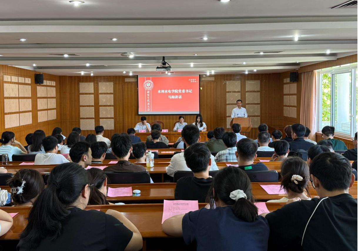 本次大会在庄严的国歌声中隆重开幕。马海代表学院党委,向大会的召开表示热烈的祝贺,向全体研究生代表和老师们致以诚挚的问候。他在讲话中充分肯定了我院研究生会过去一年取得的成绩,并对获评全校十佳优秀研究生会表示热烈祝贺。马海指出,过去一年研会紧扣学院研究生培养核心任务,以促进学子德智体美劳全面发展为目标,探索服务成长成才路径,开展系列生动有效的活动,为培养高素质复合型人才、推动学院研究生教育高质量发展贡献力量。同时立足新时代要求寄语水利水电学院全体研究生:要以坚定理想信念为指引,勇担时代责任,脚踏实地、矢志奋斗,聚焦学业科研重点,为民族复兴献青春力量;并鼓励全体研究生团结奋进、开拓创新,提升科研与服务水平,推动学院相关工作再上新台阶。
