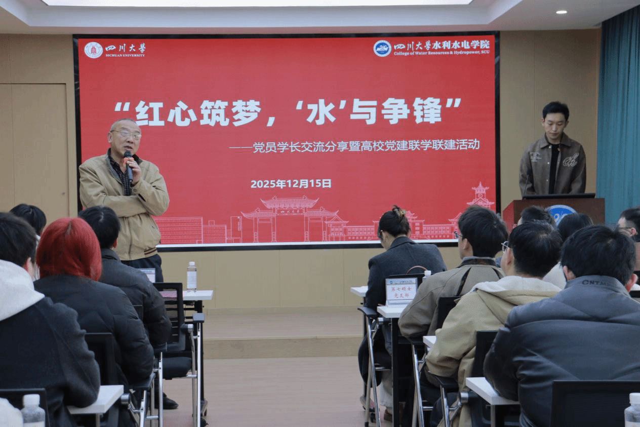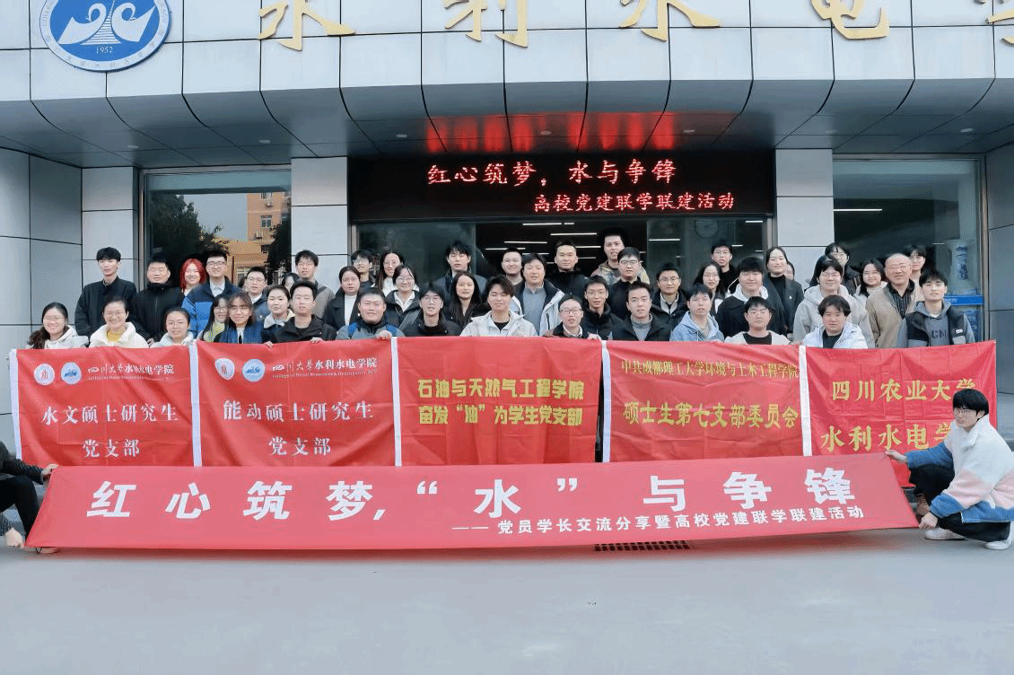 12月15日,学院农业水土工程、土木水利研究生党支部与川内多个高校研究生党支部联合开展“红心筑梦,‘水’与争锋”党建联学联建活动,四川大学、西南石油大学、成都理工大学等高校的研究生党员及入党积极分子累计50余人齐聚一堂,以党建为纽带凝聚青春力量,以学术为桥梁共话使命担当,为新时代高校党建创新与科研育人融合增添新的活力。