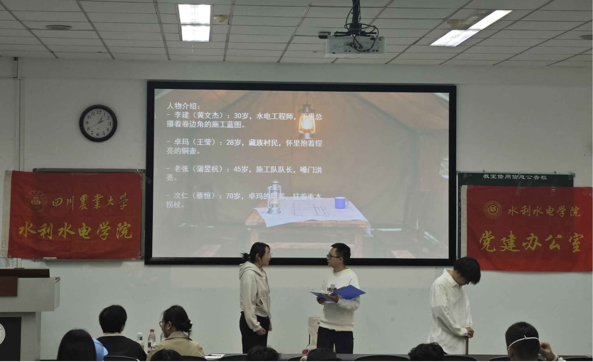 为提高入党积极分子思想政治觉悟,坚定理想信念,端正入党动机,10月21日,学院在10教A204举行2025年秋季学期入党积极分子培训班主题实践汇报表演活动。水利专业学生第一党支部副书记卢一帆、水电专业学生第一党支部副书记曾显敏、水电专业学生第一党支部副书记曾显敏、水电专业学生第二党支部书记陈博元出席活动并担任评委,47名入党积极分子参加。