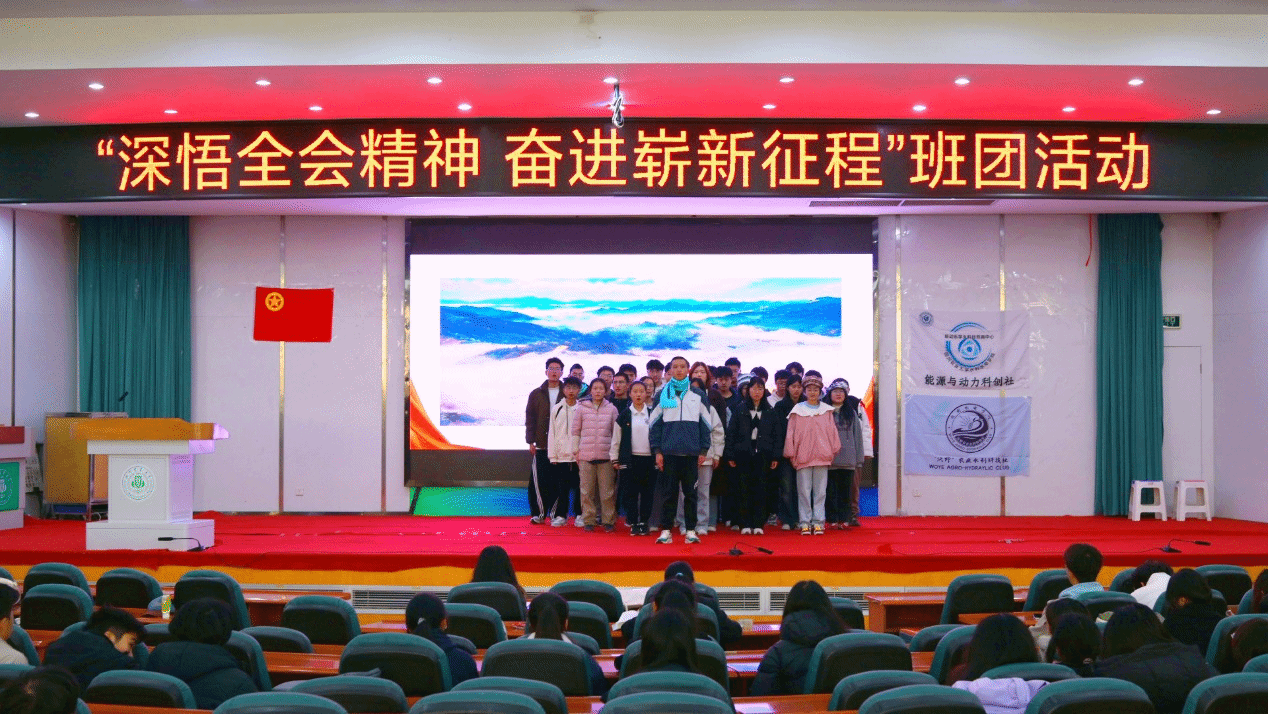 为深入学习贯彻党的二十届四中全会精神,引导青年学子准确把握“十五五”规划核心要义,11月20日上午,学生“沃野”农业水利科技社、学生能源与能动科创社联合水利202501、水利202502、水利202503、水利202504四个团支部,在第十教学楼小礼堂共同举办了“深悟全会精神 奋进崭新征程”主题班团活动。
