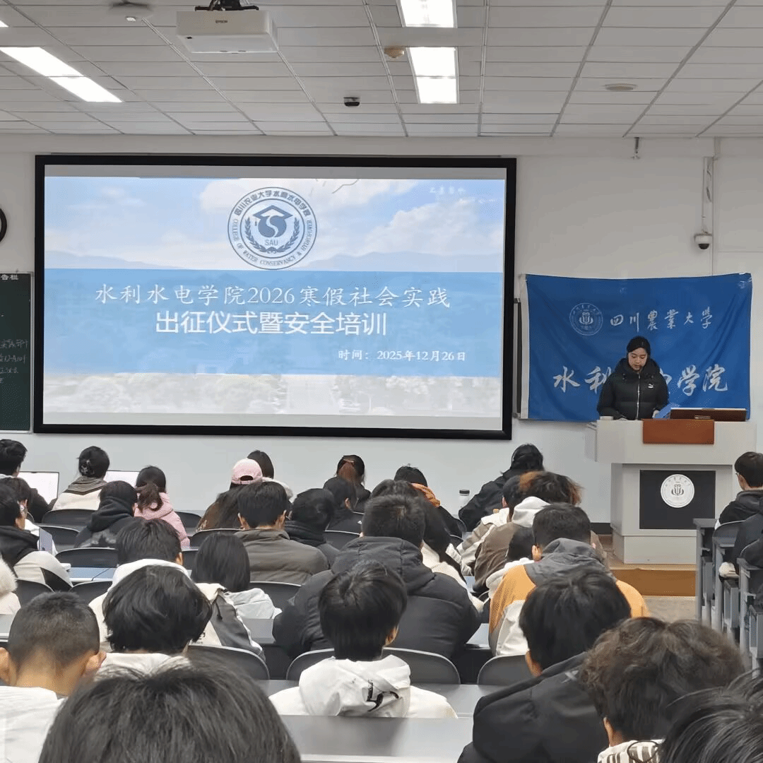 为响应党的二十大 “青年在实践中增长才干” 的号召,落实二十届四中全会关于青年投身社会实践的要求,12月26日中午,学院 2026年寒假社会实践出征仪式隆重举行。学院团委学生兼职副书记袁梦凡、林琪云出席仪式,实践团队成员代表200余人参加活动。