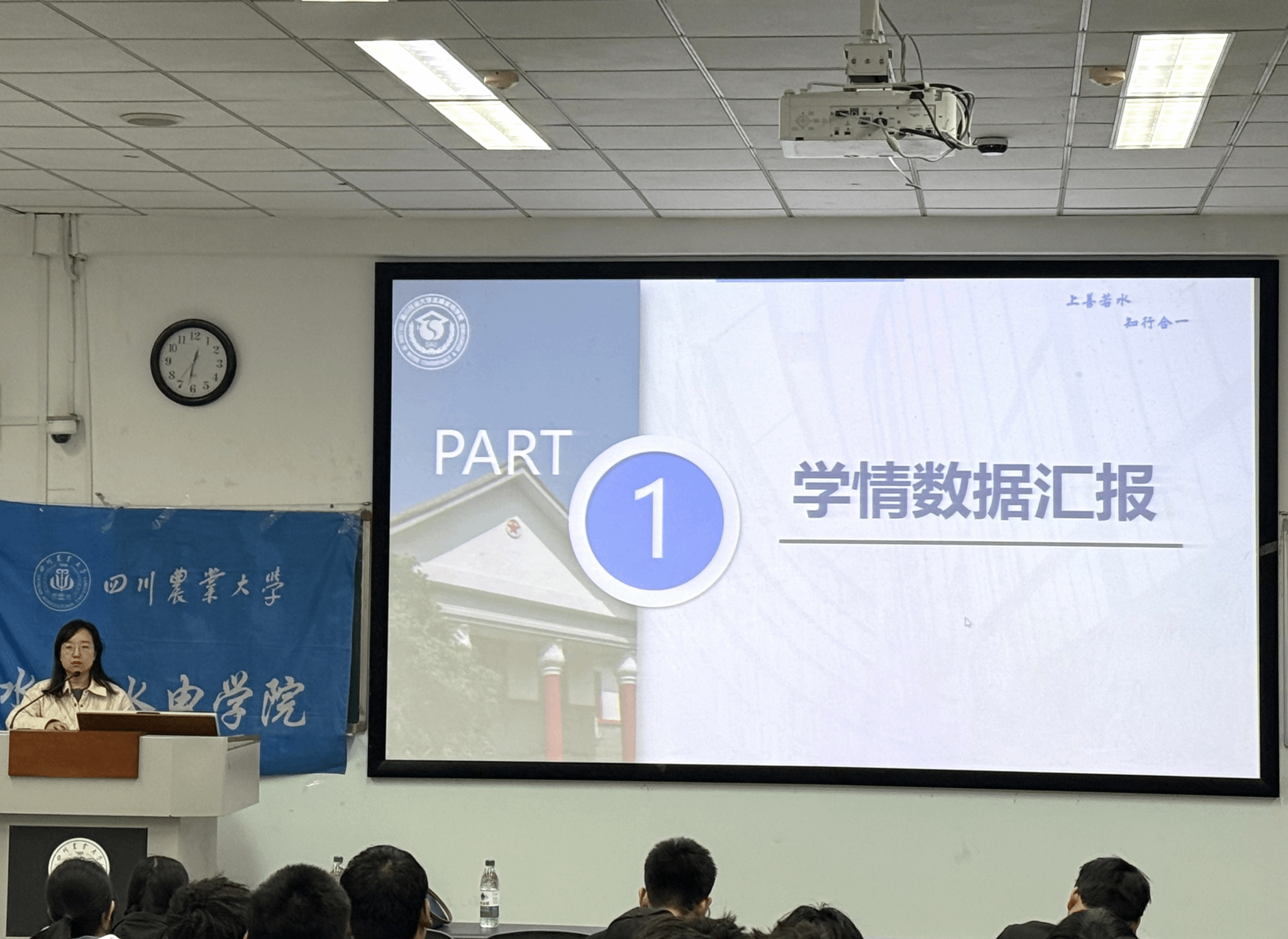杨丽萍对上一学年的学风情况进行了深入分析和点评。她通过详细的数据展示和案例分析,指出了学院在学风建设方面取得的成绩,如整体成绩的提升、挂科率的下降等,同时也毫不避讳地指出了现存的问题,如部分同学学习动力不足、学习方法不当等。她还介绍了一系列学院即将开展的学风建设活动,如早安川农、大物训练营等,希望同学们能够积极参与,不断提升自己的学习能力和综合素质。