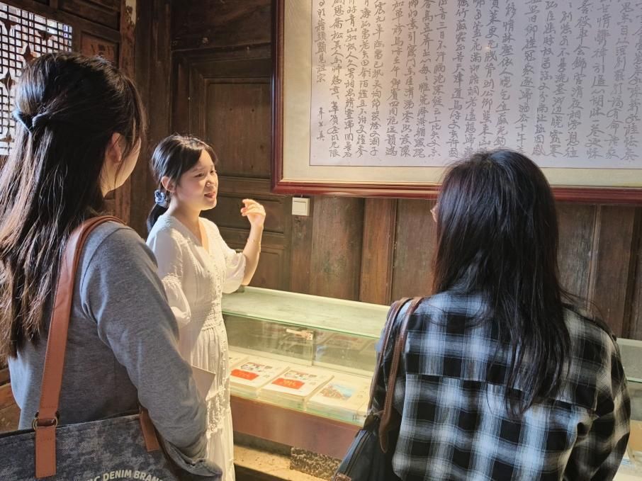 到达研学场馆后,在讲解员的带领下,学生干部们认真参观了红色文化展陈、传统家风家训展区,仔细聆听历史故事、感悟精神内涵。展柜中的珍贵史料、墙上的经典书法作品,不仅承载着先辈们求真务实、为民服务的初心使命,更让在场的学生干部深受触动。大家围绕“如何杜绝学生工作中的官僚主义”“如何摒弃功利化思想,坚守服务初心”等议题,结合参观感悟与日常工作实际,开展现场研讨交流。