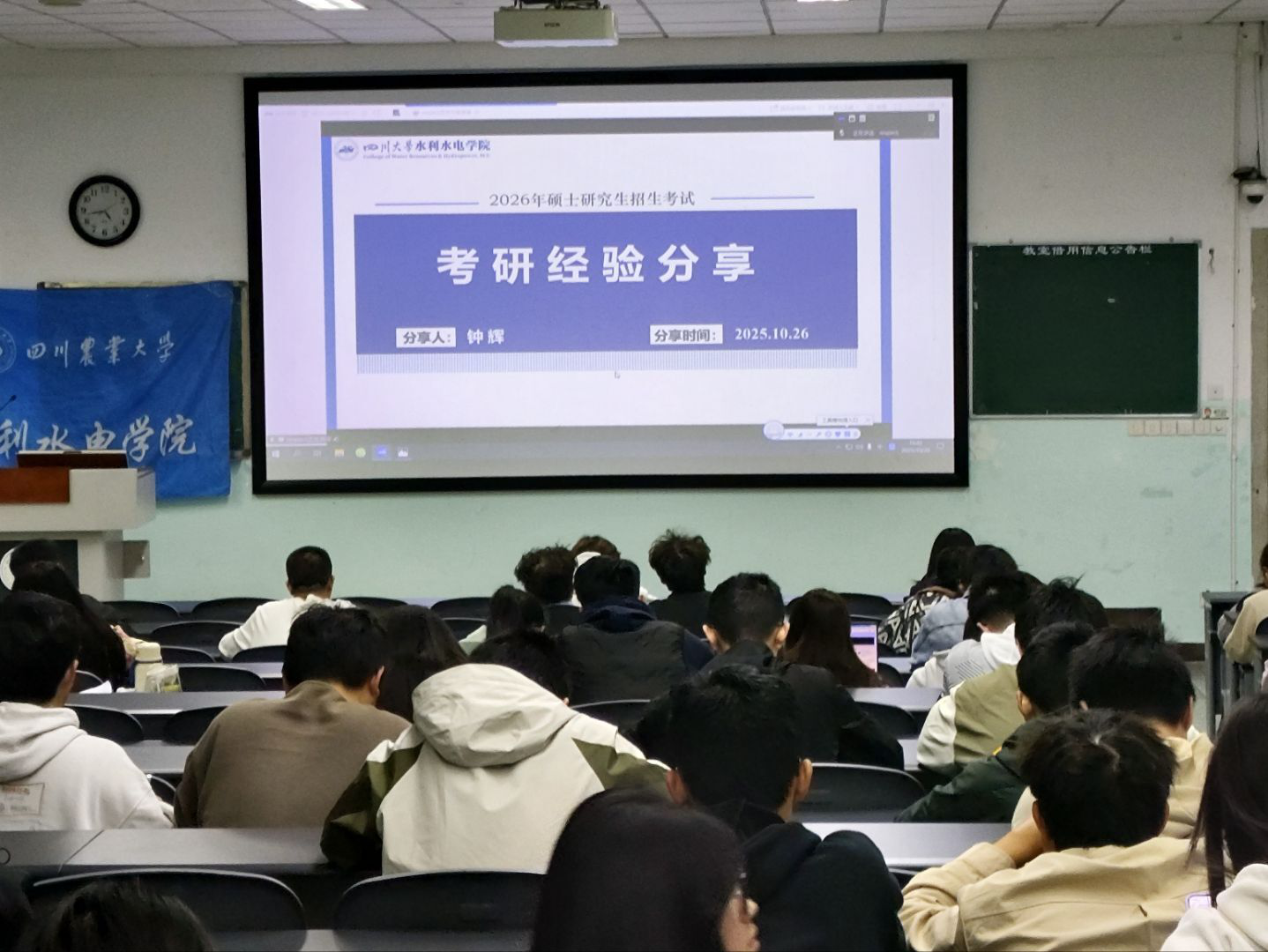 为助力2026年考研学生明晰复习路径并掌握科学备考策略,10月26日,学院开展“研途有你”系列活动之考研复习经验分享会,本次分享会邀请了升学至上海交通大学的彭书航、四川大学的钟辉、武汉大学的王梦洋三名2025届优秀毕业生分享考研经验,为备考学子传经送宝。
