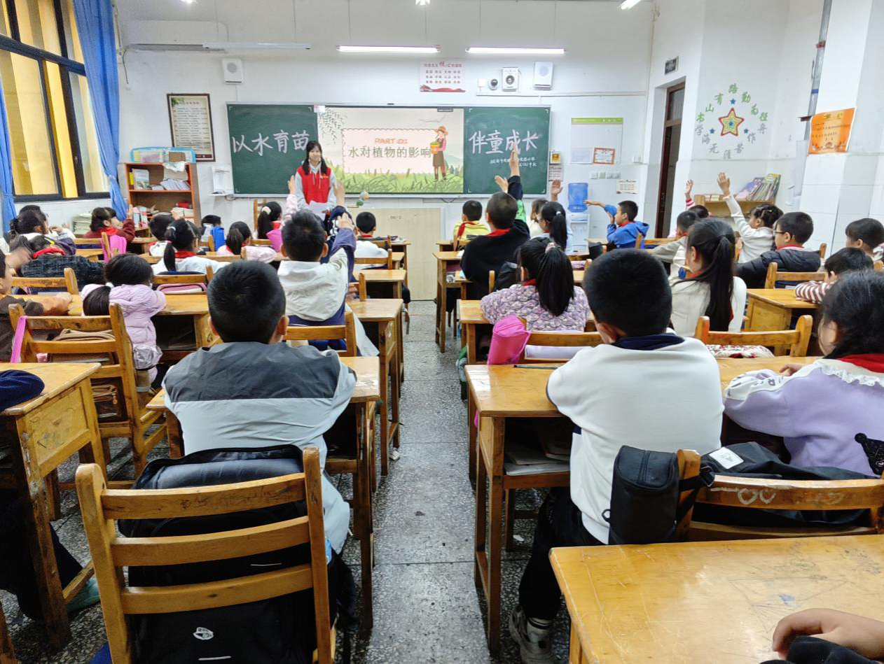上午11点,志愿者们提前到达学校,布置教室并准备相关教具,将不同生长阶段的水稻图片带入课堂,营造出贴近农业实际的氛围。随着上课开始,主讲人宋文从“植物与水的关系”引入,讲解水在植物生长中的关键作用,并逐步过渡到水稻这一主要水生作物。