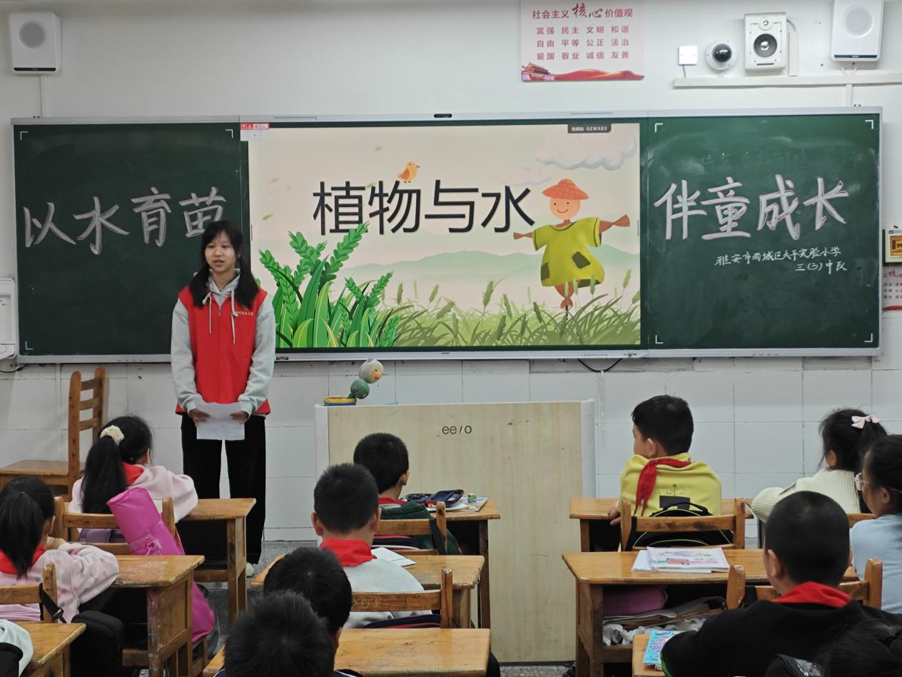 为增强学生对农业知识与水与植物关系的理解,培养珍惜粮食、爱护水资源的意识,学院团委志工部于10月23日上午组织6名志愿者前往雅安市太平实验小学,开展了一场以“以水育苗,伴童成长”为主题的教育实践活动。本次活动由志愿者宋文主讲,通过讲解与互动任务相结合的方式,引导学生认识水稻的生长特性、种植过程及其与水资源的关系。