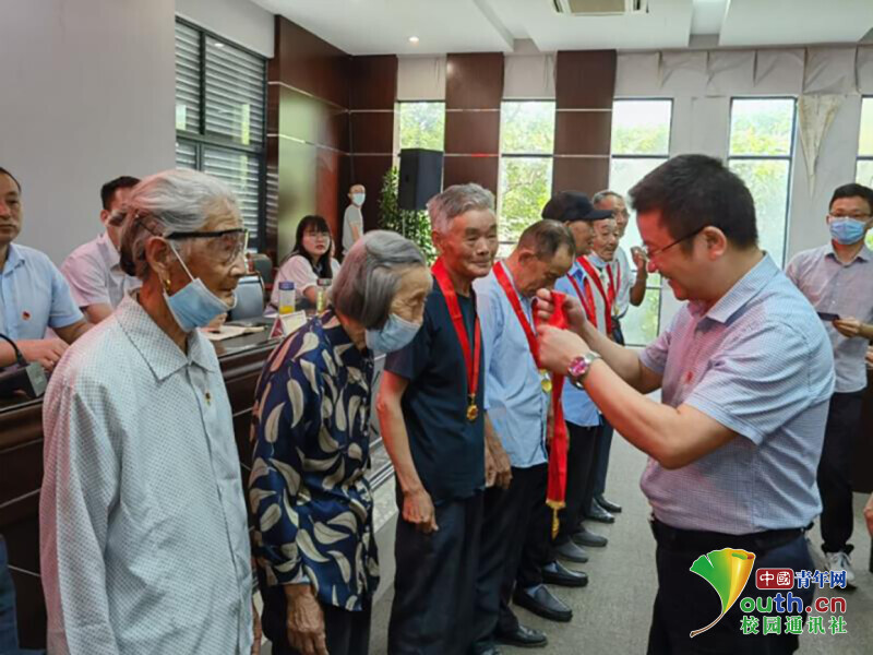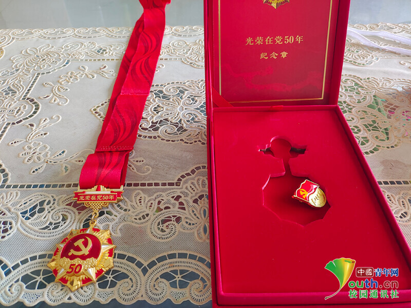 图为樊奶奶参加“光荣在党50年”纪念章颁授仪式。中国青年网通讯员 叶关情 摄