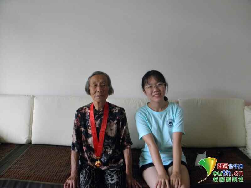 图为樊奶奶正接受青年学子的采访和慰问。中国青年网通讯员 叶关情 摄